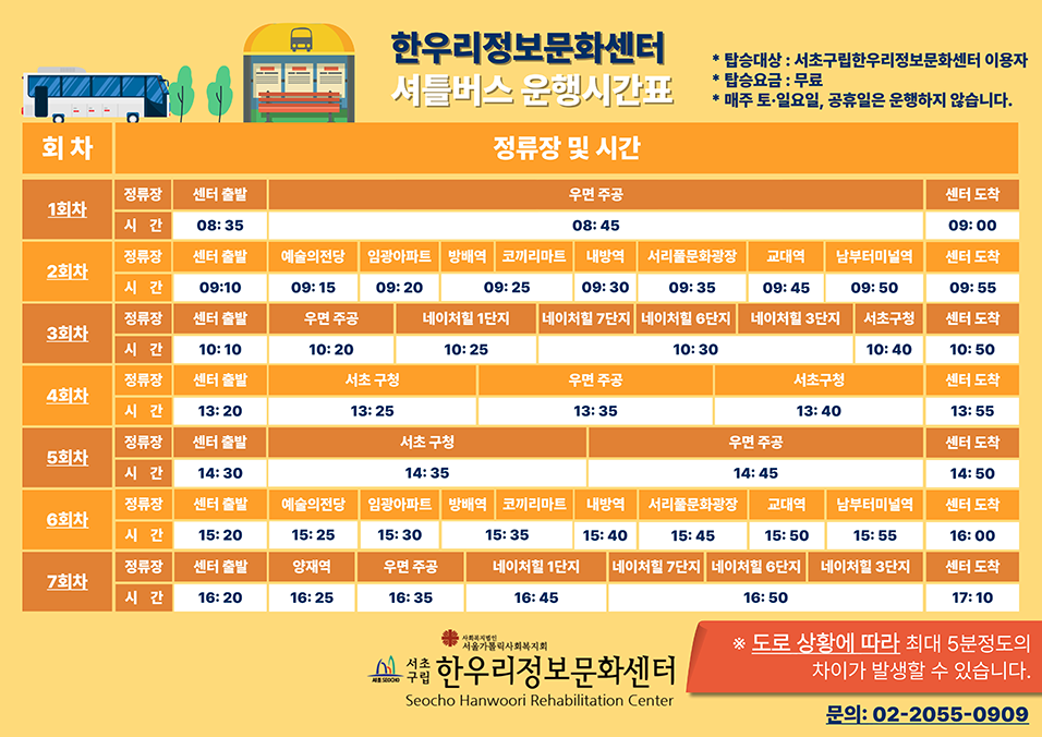 탑승대상 : 서초구립한우리정보문화센터 이용자