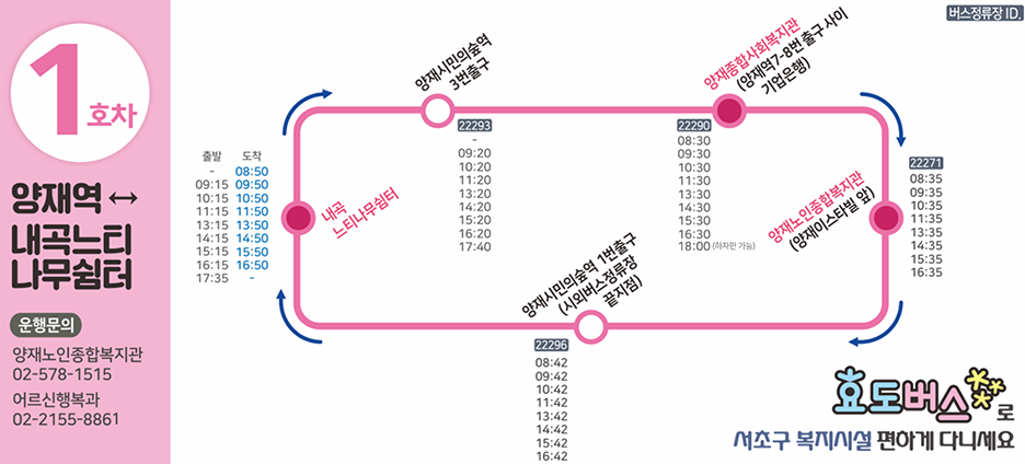 운행문의 : 양재노인종합복지관 02-578-1515, 어르신행복과 02-2155-8861