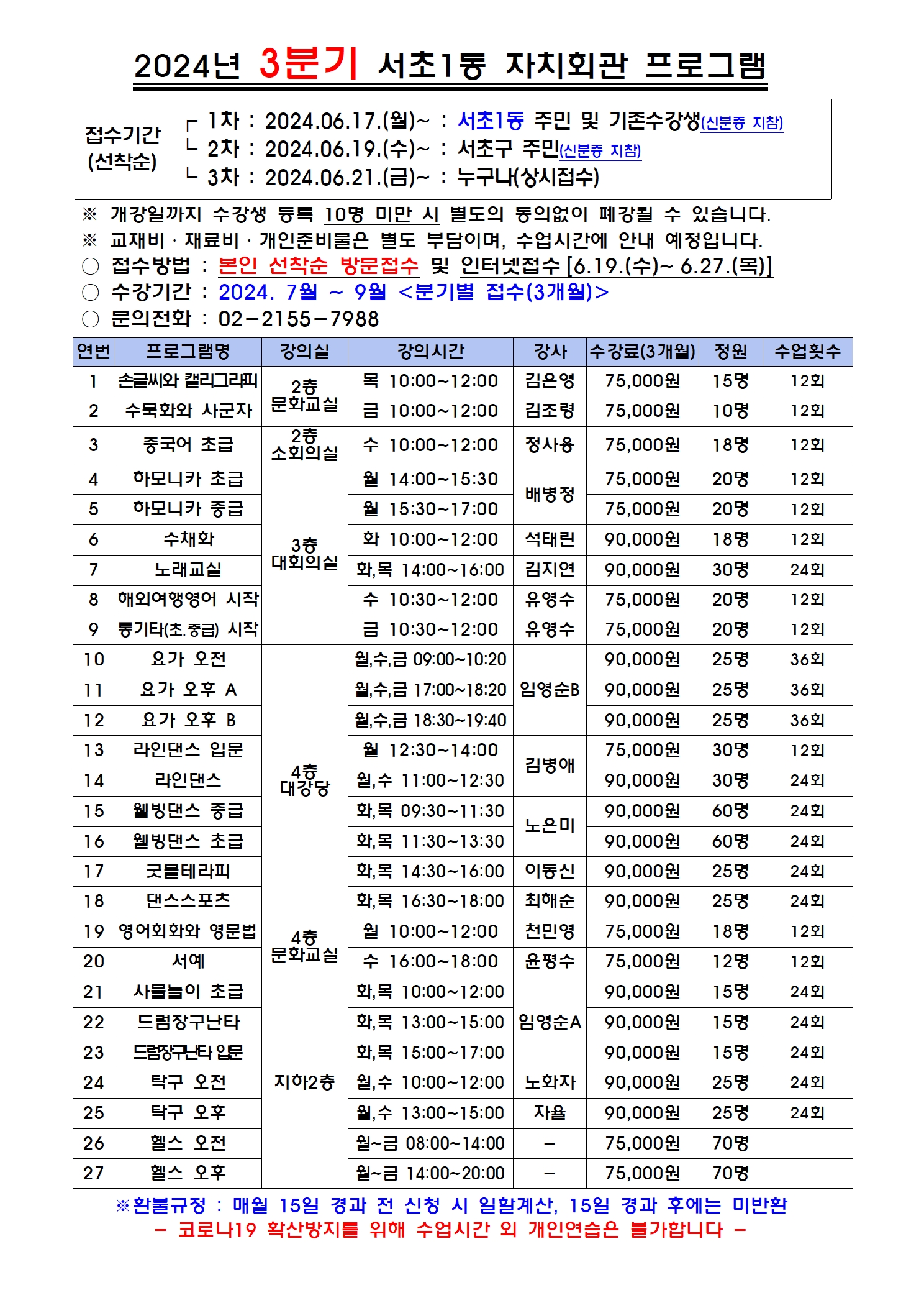 문의전화 : 서초1동 자치회관 02-2155-7988