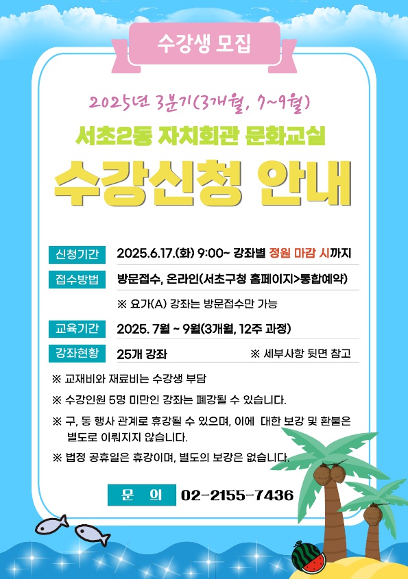 | 서초2동 문화교실 | 2016-01-04 | 2019-12-31 | 48 | 연필화, 수채화 |