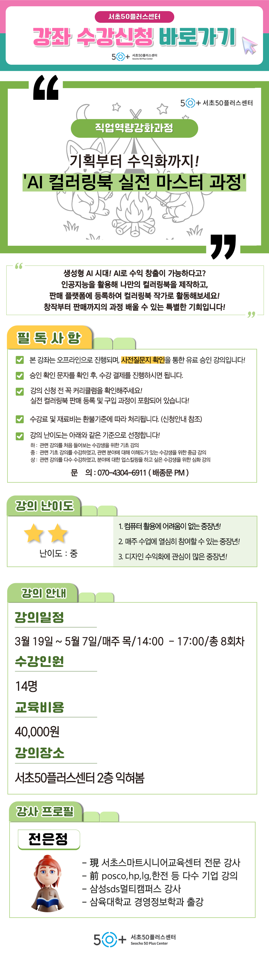 강사의 전문분야, 강좌명, 과목명 안내