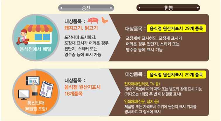 - 대상품목 : 음식점 원산지표시 29개품목